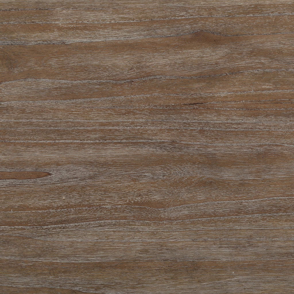 Complete your modern farmhouse dining room with this seven-piece dining set. Complete with one dining table and six side chairs, it offers a matching vintage white finish that lends a country charm. The spacious, rectangular dining table also features a chestnut colored, sandblasted wood tabletop with a dry brushed weathered finish. Each of the six chairs have a sturdy solid wood frame and flared backrests with open double-cross designs. Rest comfortably on their cushioned seats, wrapped in a high performance fabric in a grey hue that complements numerous color palettes. Key Features: • A seven piece set that will sell day in and day out with its charming worn finish and modern translation of farm house • Sold as a seven piece set all packed in one carton • With a sand blasted table top, dry brushed, sand thru effects • Chairs are solid rubberwood, with seat frame construction • Seats are upholstered with light brown color high performance fabric