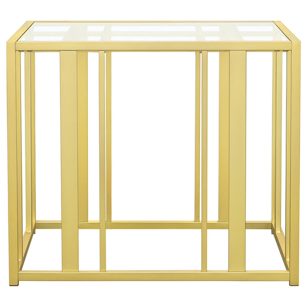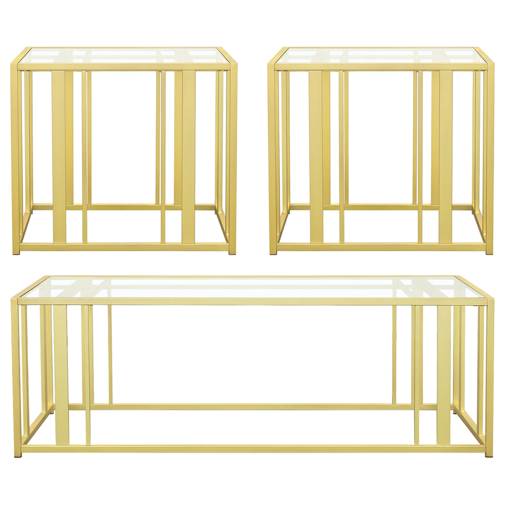 This coffee table set includes a rectangular coffee table and a matching end table, both featuring tempered glass tops and geometric bases crafted from heavy-gauge metal. The open-frame design exudes modern elegance while offering durability and functionality. Scratch-resistant materials ensure lasting quality, making the set ideal for organizing essentials or displaying decor. Its cohesive design provides a sleek, contemporary look for any living room. Key Features: • Coffee table set with tempered glass tops • Heavy-gauge metal bases in black nickel electroplated finish • Matching geometric open-frame design for modern appeal • Scratch-resistant materials ensure durability and longevity • Versatile surfaces ideal for decor and essentials • Low-maintenance construction for effortless cleaning