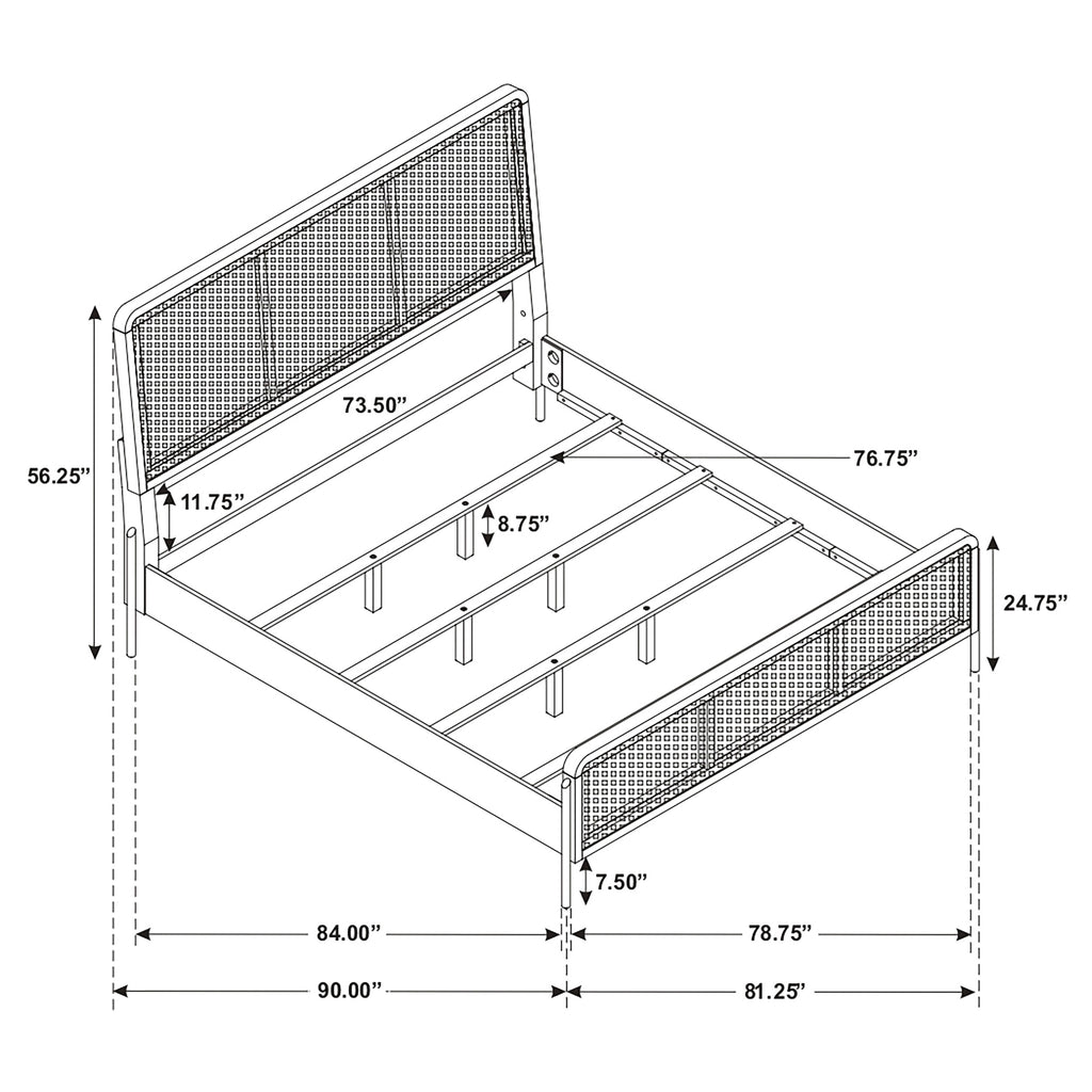 Bring a touch of natural elegance to your bedroom with this mid-century modern inspired panel bed. A refined sand wash finish highlights the warm tones of woven rattan cane panels, creating texture and depth across the headboard and footboard. Sleek aged brass metal legs lend subtle glamour and stability, balancing organic style with modern appeal. Built from a blend of rubberwood, engineered wood, and metal, this bed combines durability with a fresh fashion trend, transforming any bedroom into a relaxing retreat._x000D_ Key Features: • Queen bed crafted with woven natural cane panels for organic mid-century appeal • Eleven-step wire brushed sand wash finish highlights rich natural wood tones • Headboard and footboard framed in rubberwood for strength and durability • Aged brass finished tubular metal legs add a refined modern glam contrast • Constructed with solid wood, engineered wood, veneer, cane, and metal details • Foundation required for proper mattress support and long-lasting performance