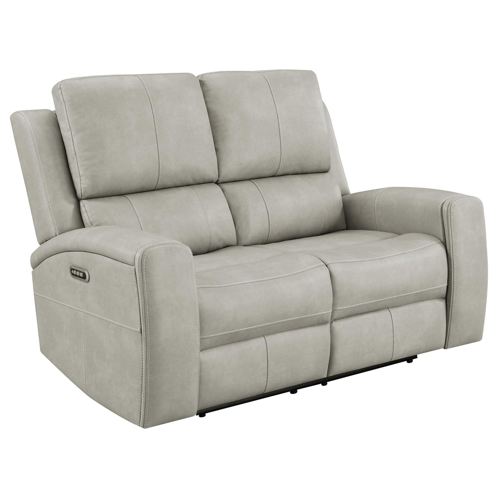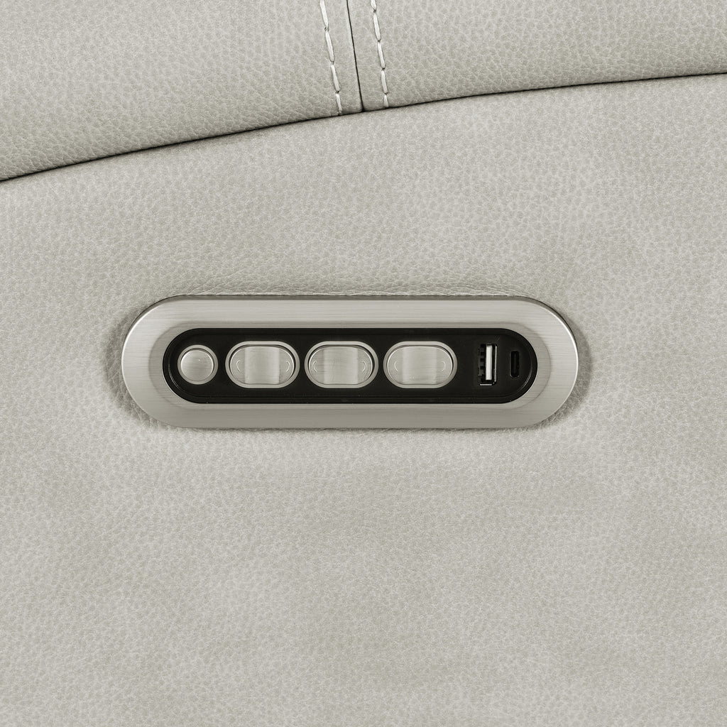 This triple power sofa set is crafted for complete relaxation and everyday luxury. Wrapped in soft leatherette with contrast stitching, each piece offers smooth reclining, adjustable lumbar, and power headrest support at the touch of a button. Hidden cup holders are tucked within each armrest, while a built-in control panel with USB A and USB C charging ports keeps essentials close. A rear-mounted power access panel includes an emergency battery feature for uninterrupted comfort, even during power loss. Key Features: • Triple power sofa set with power headrest, power lumbar, and smooth reclining support • Charcoal leatherette upholstery with contrast stitching adds modern texture and comfort • Hidden stainless steel cup holders in armrests keep beverages within easy reach • Power control panel includes USB A and USB C charging ports and home button • Rear AC power panel supports direct wall plug-in and optional 9V battery backup • Built from leatherette, foam, engineered wood, pine, and metal for lasting durability