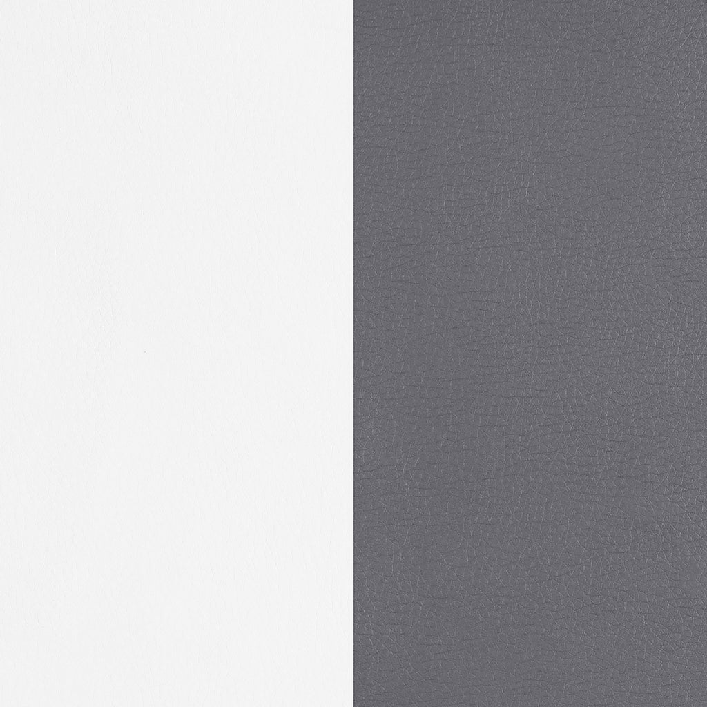 Sleek and stylish, this side chair features a modern cantilever design with a two-tone faux leather finish. Upholstered in soft grey with crisp white accents, the chair showcases a sculpted silhouette highlighted by tailored welt trim. A polished chrome base adds contemporary shine and retro flair, while the integrated handle offers easy movement. Perfect for elevating any modern dining space. Key Features: • Ultra-modern side chair with cantilever base and integrated handle design • Grey leatherette seat is accented with crisp white leatherette panels • Polished electroplated chrome frame offers retro style and lasting support • Welt trim details enhance the contoured backrest and tailored silhouette • Built with engineered wood, high-density foam, and heavy-gauge metal • Great for modern dining rooms, breakfast nooks, or high-style conference spaces