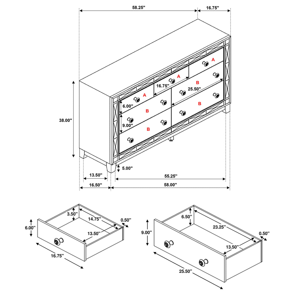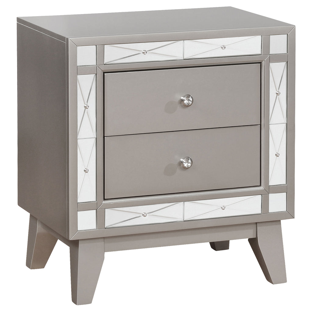 This exquisite, four-piece bedroom set is the ultimate in casual glamour. With loads of convenient storage space, it's also appealingly versatile. Button tufting adorns the headboard for a chic, trendy appearance. Its solid wood legs are finished in rich cappuccino to complete its design in style. Complete with a bed, nightstand, dresser, mirror, and chest, this set has all you need for an attractive bedroom upgrade.