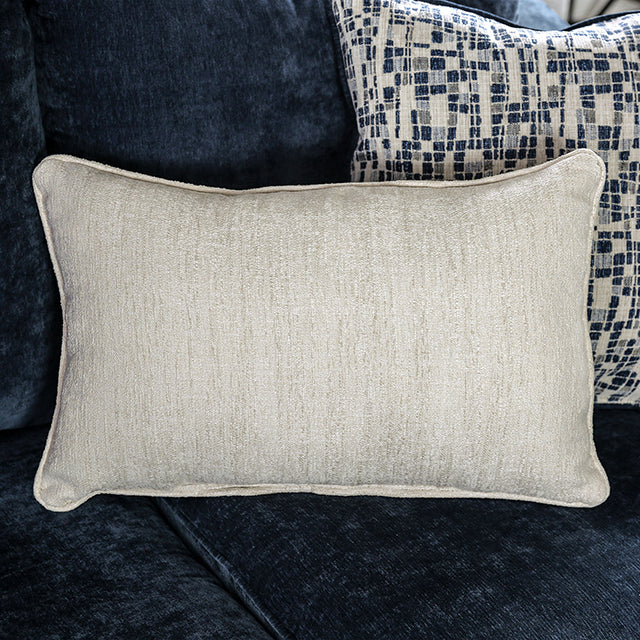 For those looking to balance a minimalist room with a visually hefty piece, this sectional is the perfect choice. The navy chenille is the star of the show--bold yet inviting, the soft fabric uncannily reminds you of the depths of the oceans. Along with contrasting ivory accents, it may also conjure the image of a vast sky in the darkest of nights. The oversized stature of the frame, with wide, low profile arms and loose pillow backs, helps invoke a sense of immense freedom. It's the kind of furniture that fills in the space it is set on, designed to take any home decor up a notch.