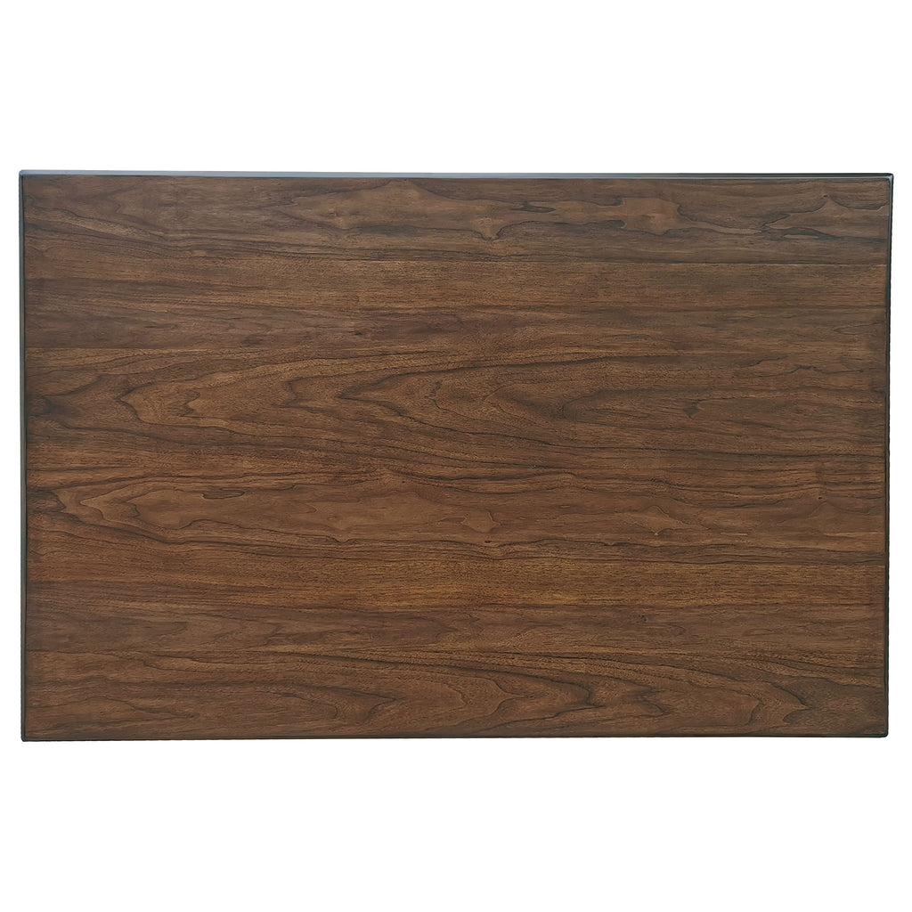 Gather together at this transitional five-piece counter height table and chair set. Designed with a rich walnut finish, this dining set lends itself to a variety of color palettes and decor styles. Each counter height stool offers padded seats, wrapped in a smooth brown leatherette, and a supportive frame with footrests and a backrest. Slide each chair up to the spacious table, set on top of a pedestal-like base with open shelves for storing service ware, linens and more. In addition, this dining set also keeps other essentials like flatware and linens stowed away in the two drawers until your next party.