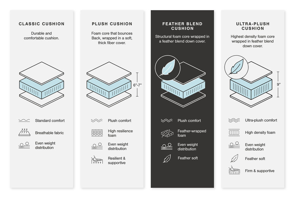 - Feather-fiber blend cushion