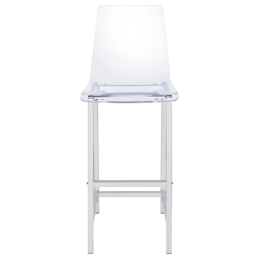 Elevate your space with this chic acrylic chair, designed to bring a modern and airy feel to any setting. The transparent seat offers a unique, minimalist look that blends seamlessly with various decor styles, while providing a comfortable perch for casual seating. Supported by a sleek chrome base, this stool includes a convenient footrest and adjustable height feature to ensure the perfect fit. Its durable acrylic construction is easy to clean, making it as practical as it is stylish. Ideal for contemporary kitchens or home bars, this stool adds a touch of sophistication without overwhelming the room. Key Features: • Modern acrylic bar chair perfect for elevating wet bar or recreation room aesthetics • Futuristic design highlighted by a brilliant chrome finish for radiant elegance • Features sturdy back and foot supports for enhanced comfort • Perfect for home bars, kitchen islands, or casual dining areas • Constructed from high-quality acrylic, ensuring both durability and style