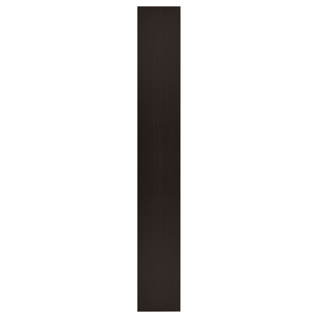 Maximize storage without sacrificing style with this tall, narrow bookcase in a deep cappuccino finish. Designed with a compact footprint, it features nine shelves—six of which are adjustable—to easily accommodate books, décor, or office supplies. Crafted from engineered wood and finished in a durable melamine veneer, this sleek bookcase adds a modern touch to any living room, bedroom, or home office.