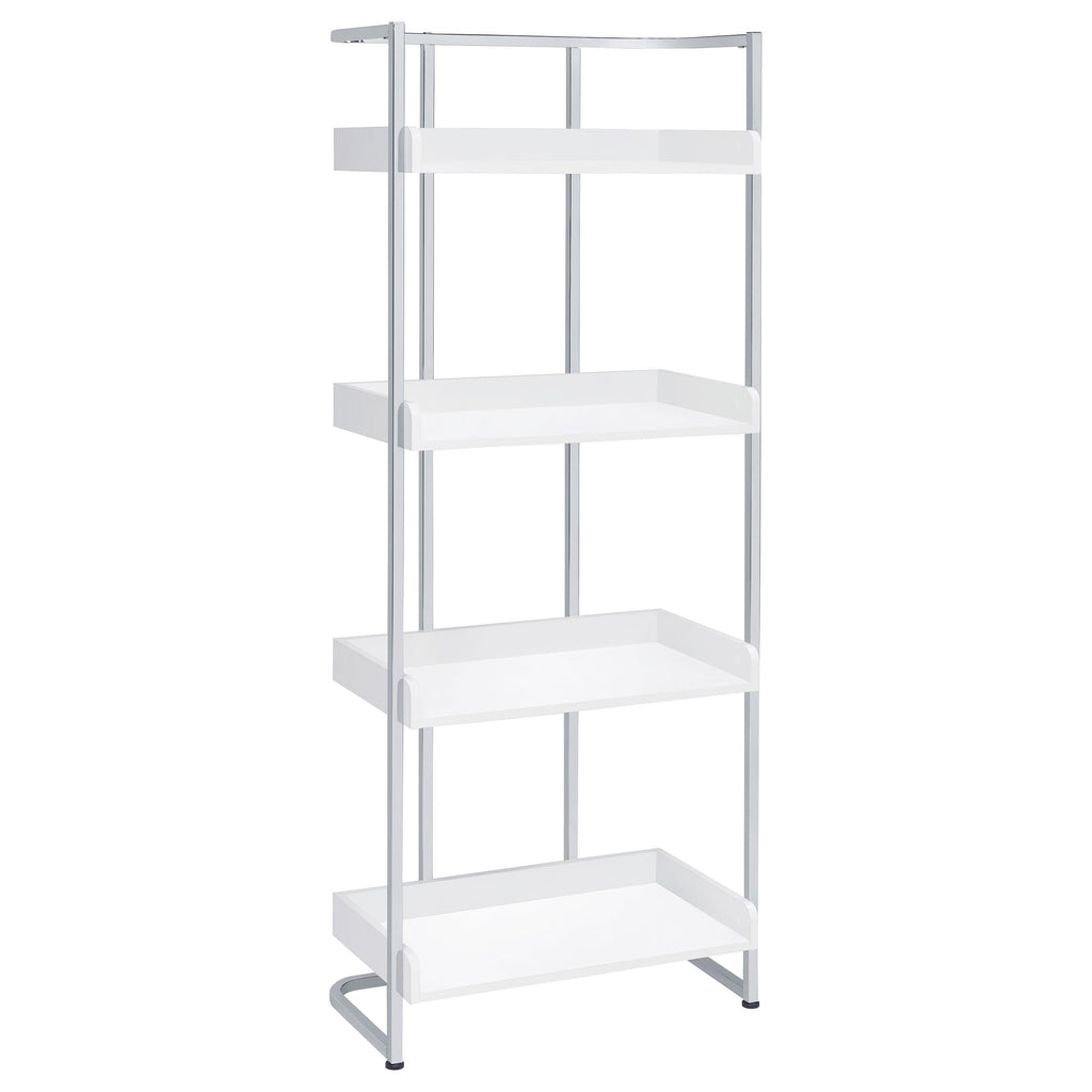 Ember 4-shelf Bookcase White High Gloss and Chrome