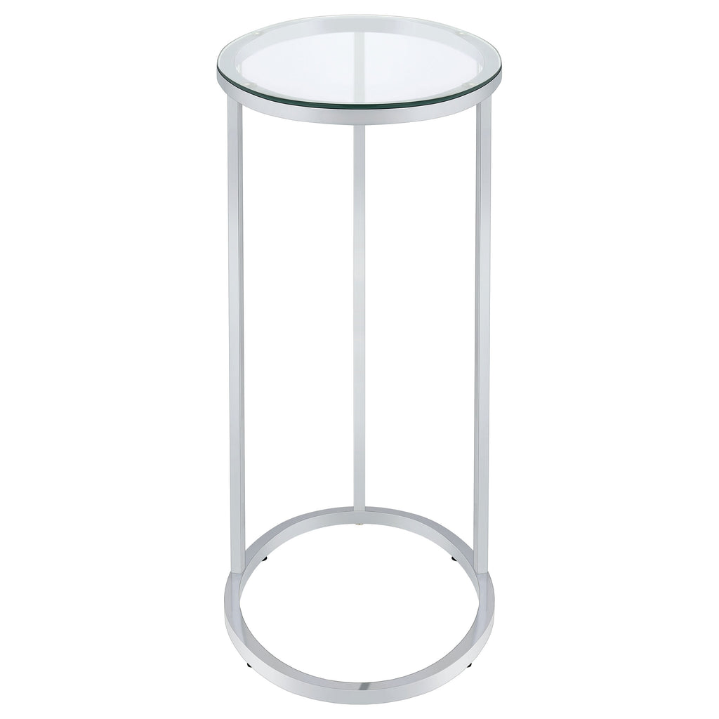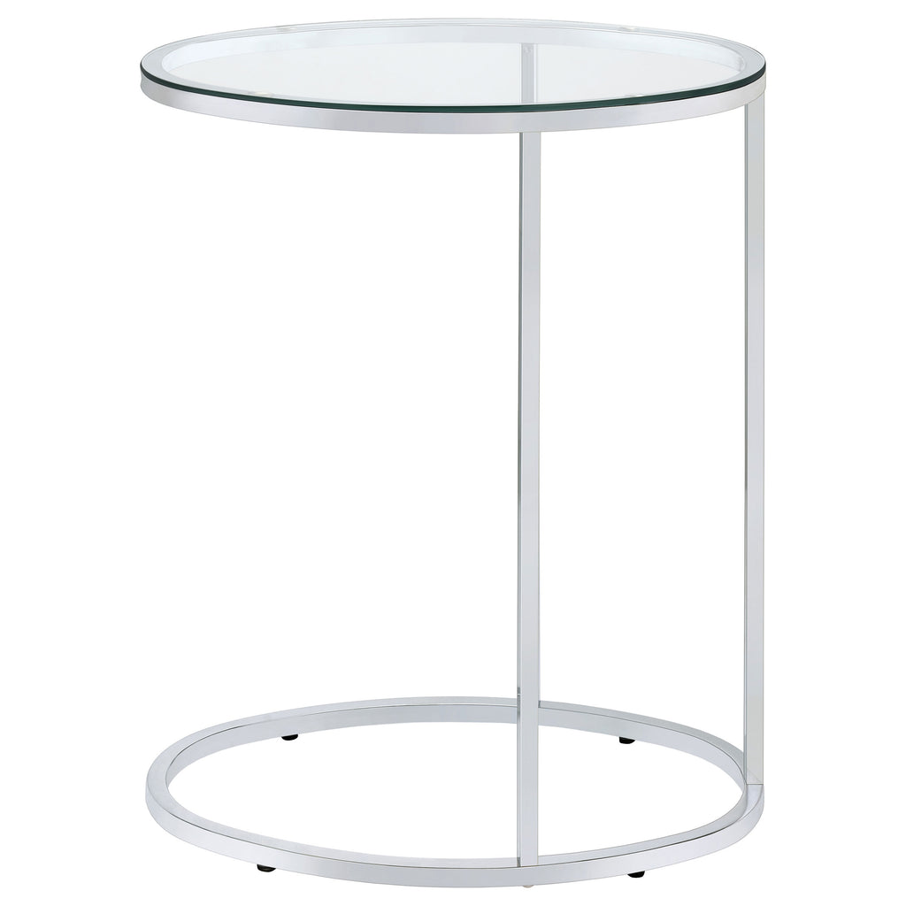 This oval side table features a sleek, modern design with a clear tempered glass top that offers both durability and elegance. Its minimalist metal frame, electroplated in chrome, provides a polished, reflective finish that enhances its contemporary aesthetic. Designed for versatility, this c-table is perfect for small spaces or as a functional accent piece next to a sofa or chair, adding a touch of style and practicality to your living room. Key Features: • Oval side table with a clear tempered glass top for a sleek, durable surface • Electroplated chrome frame delivers a polished, reflective finish • Minimalist metal frame design enhances contemporary interiors • Compact and lightweight, ideal as a versatile c-table for small spaces • Open frame provides easy access for use beside sofas or chairs • Perfect for functional use or as a modern accent piece in any room