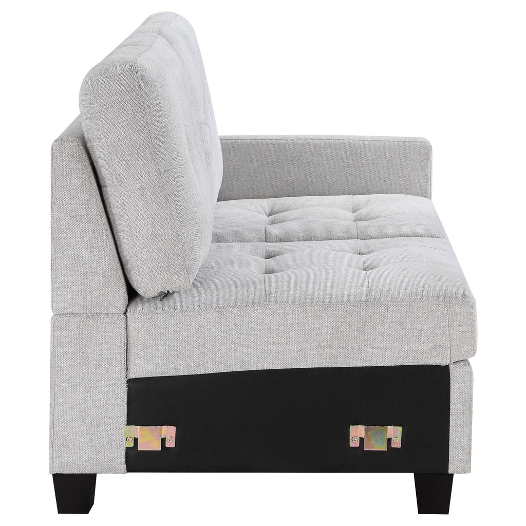 Complete your sectional setup with this right arm facing (RAF) loveseat, designed to add both style and functionality to your living space. The loveseat is upholstered in a refined fabric that pairs well with a variety of decor styles, making it a versatile addition to your home. Foam-padded cushions offer plush comfort, while the sturdy wood frame ensures durability and support. The right armrest design is perfect for creating a finished look in your sectional arrangement. Subtle tufting on the back cushion and chunky wood feet contribute to the chair’s timeless design, making it a stylish and comfortable choice for any room.