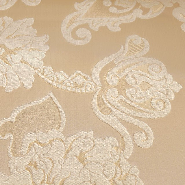 A fabulous array of ornate details! Intricate carvings of countless design adorn the wood, faux felt , velvet fabric beautifies the upholstery and embroidered floral patterns embellish the seat cushions. Not just elegant, this set is truly unique!