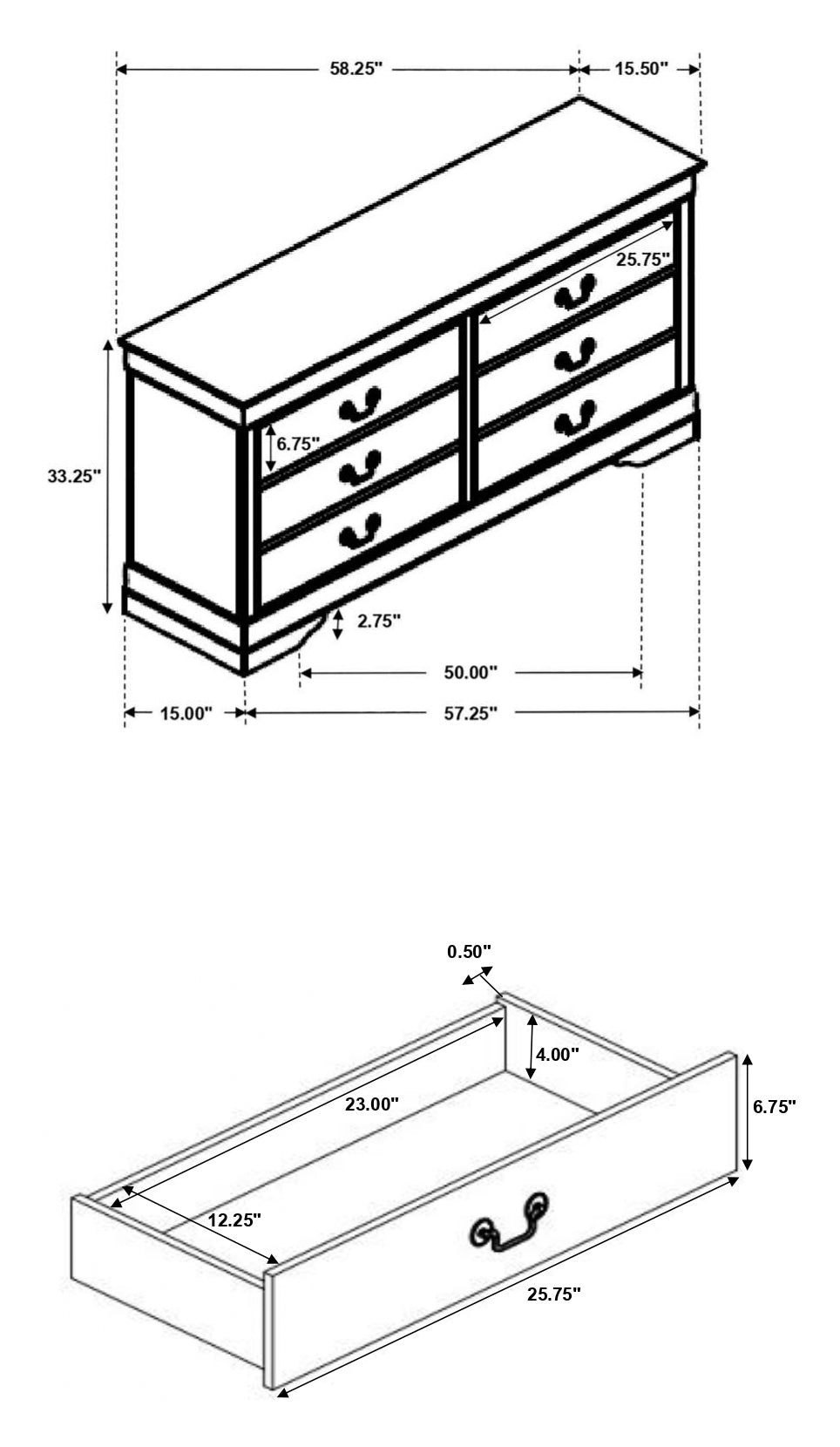 The Louis Philippe collection is highlighted by this 4-piece bedroom set that is perfect for the guest bedroom or youth bedroom. The Full bed (also available in Eastern King, Queen, and Twin) is characterized by a high headboard and low footboard, both with slightly flared styling. The nightstand and dresser have deep drawers with dovetail construction and silver bail handles for convenient pull-out and stylish appeal. Place the impressive rectangular mirror fits upon the dresser to complete the look. Built from select hardwoods and wood veneer, this traditional-style set comes with a cappuccino finish that adds a warm ambiance to the bedroom. Key Features: • A slightly higher headboard distinguishes this classic Louis Philippe style bed • Nickel finish bail drawer handles decorate drawer fronts • Dovetail drawer construction creates a sturdy drawer foundation • Crafted from rubberwood and okume veneer • Headboard only options are available to use with metal bed frames