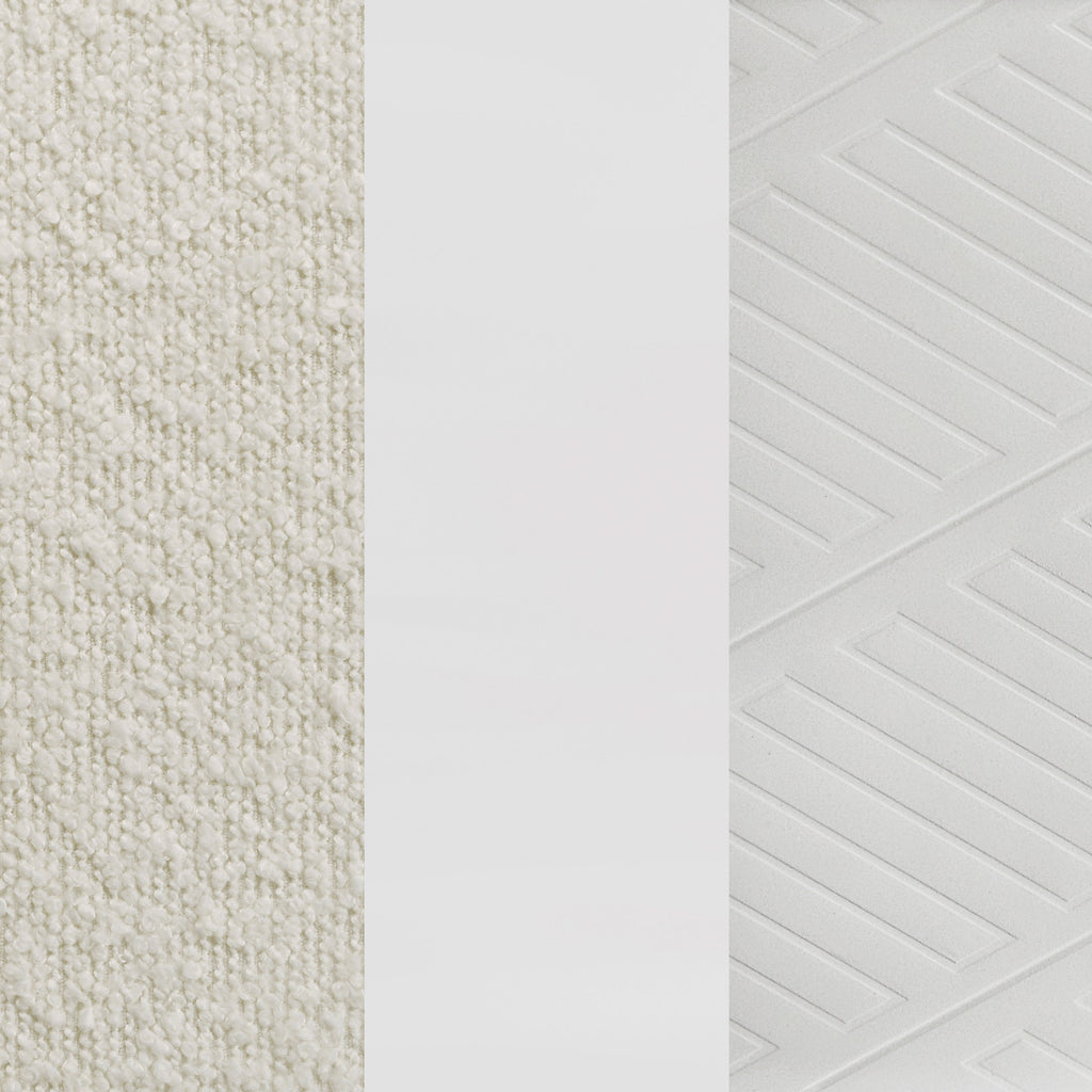 Create a cohesive and luxurious look in your bedroom with this bedroom set. Featuring a bed, nightstand, dresser, mirror, and optional chest, each piece is designed with a modern Italian aesthetic. The white finish, picture framed recessed panels, and embossed herringbone graphic patterns exude sophistication, while the mirror framing, acrylic legs, and polished chrome metal hardware add a touch of opulence. This set offers both style and functionality, making it the perfect choice for your elegant bedroom.