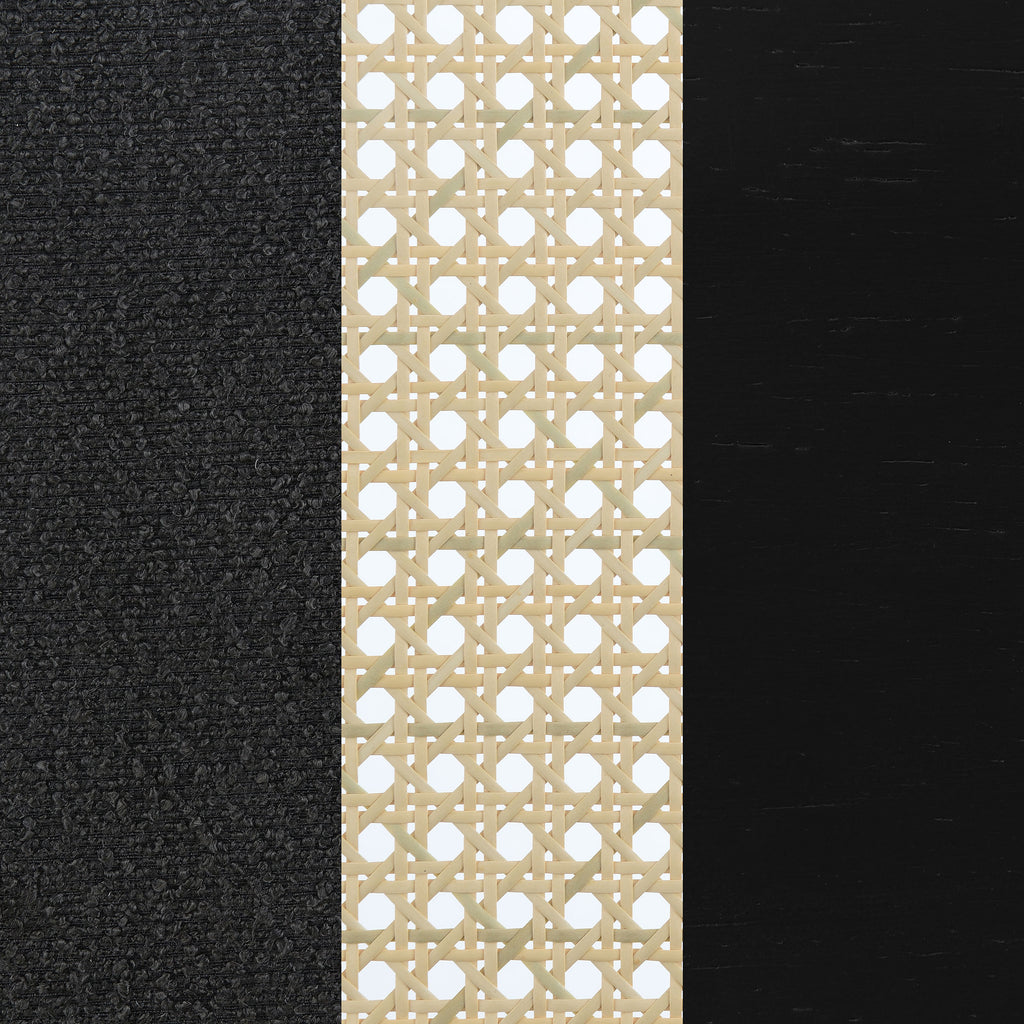 This accent chairs introduces a warm, airy presence to any living area. Lounge chair features a rattan open cane webbing back that breathes natural style and a fabric upholstered cushioned seat for soft, supportive comfort. The solid hardwood frame provides timeless stability. Ideal as occasional chair for reading nooks or side chair in conversation areas, this piece blend casual elegance with functional seating.