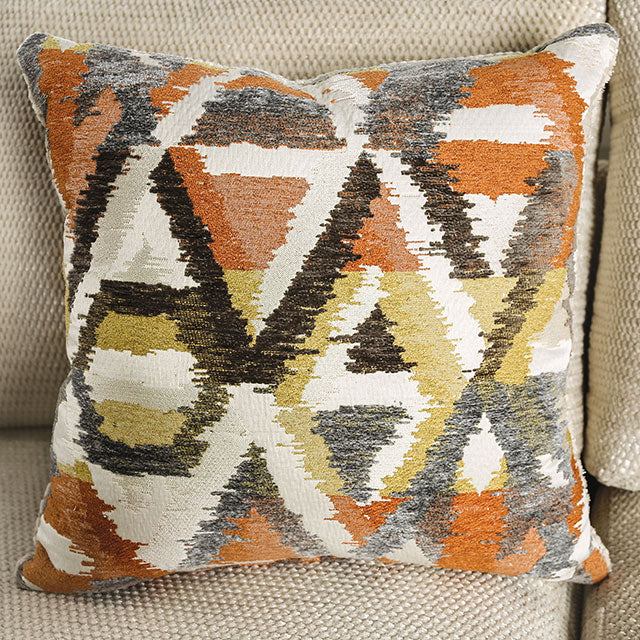 A pronounced honeycomb pattern offers subtle visual texture from a few feet away for an attractively ambiguous appearance. Book-ended by left and right-side corresponding chaise lounges, each with a single subtly curved track arm, the sofa between features giant square pillow back-rests and super stuffed seat cushions. A variety of pillows offer a colorful sense of whimsy while tapered wood feet provide a solid sense of security.