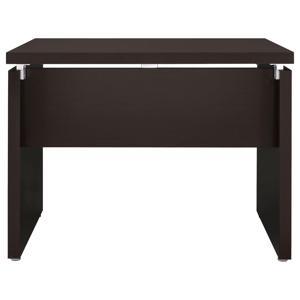 Outfit your home or professional workspace with the ease and convenience of a spacious L-shaped desk and filing cabinet. Designed to make a stylish focal point, the set features a deep cappuccino finish augmented with silver-toned hardware, creating depth and dimension while offering modern flair to clean lines that facilitate productivity. The large desktop is complemented with a keyboard tray that adds ergonomic appeal for computer work and is roomy enough for a multiple monitor set-up. The set includes a mobile filing cabinet complete with casters, including one under the file drawer that assures smooth movement while providing additional support. Above the file drawer, two accessory drawers add a perfect spot to organize essentials like pens, notepads and charging cords to maintain a tidy and organized workspace each day.