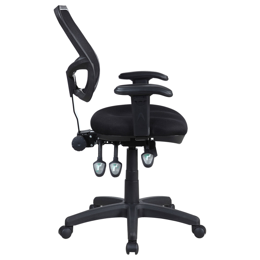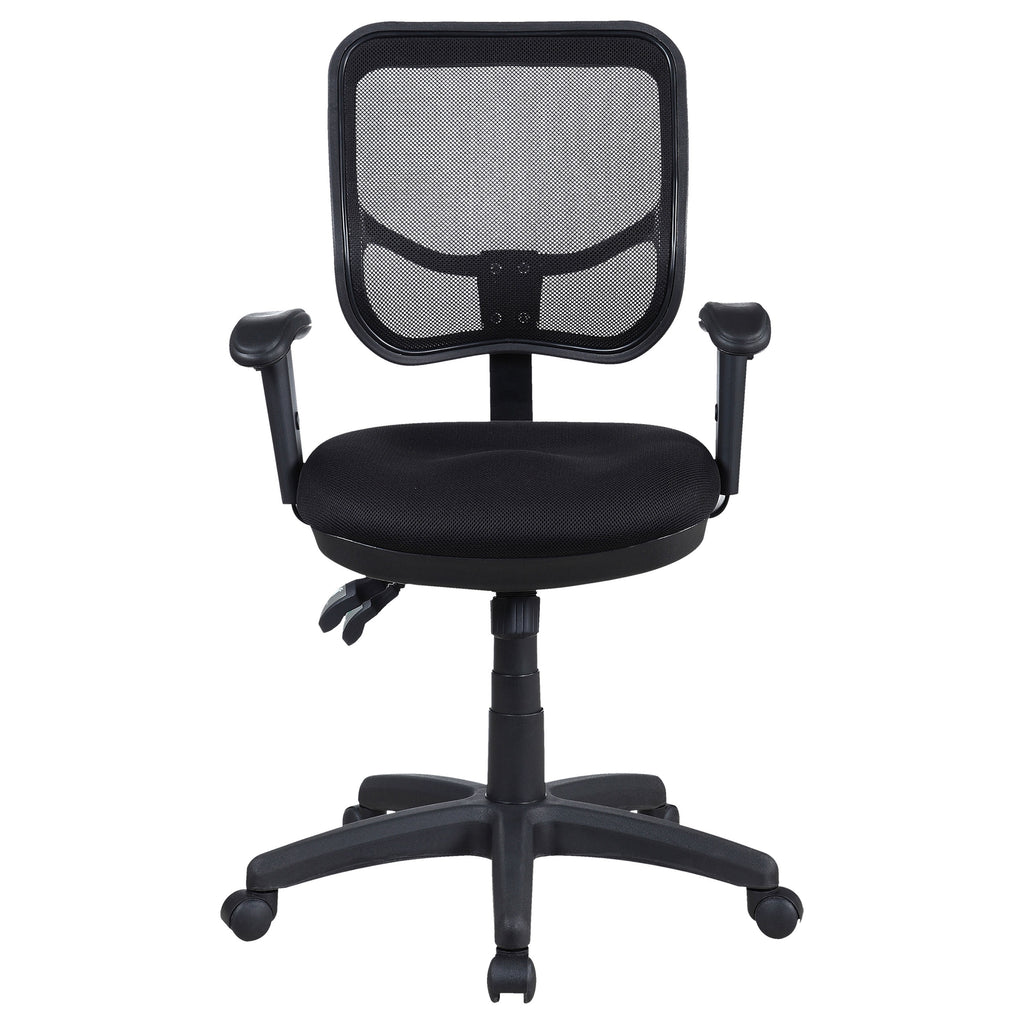 Work productively in exceptional comfort. A home or business office benefits from ergonomically upgraded seating, and this office chair fills the void. Stylish mesh on its seat back offers breathability to avoid moisture and mold. Sit comfortably on a molded seat and take advantage of multiple adjustability features. A spoke base with caster wheels ensures optimal mobility throughout the work day. Key Features: • Ergonomically upgraded seating for exceptional comfort • Breathable mesh seat back to avoid moisture and mold • Molded seat for comfort and multiple adjustability features • Spoke base with caster wheels for optimal mobility • Stylish black design to fit any home or business office