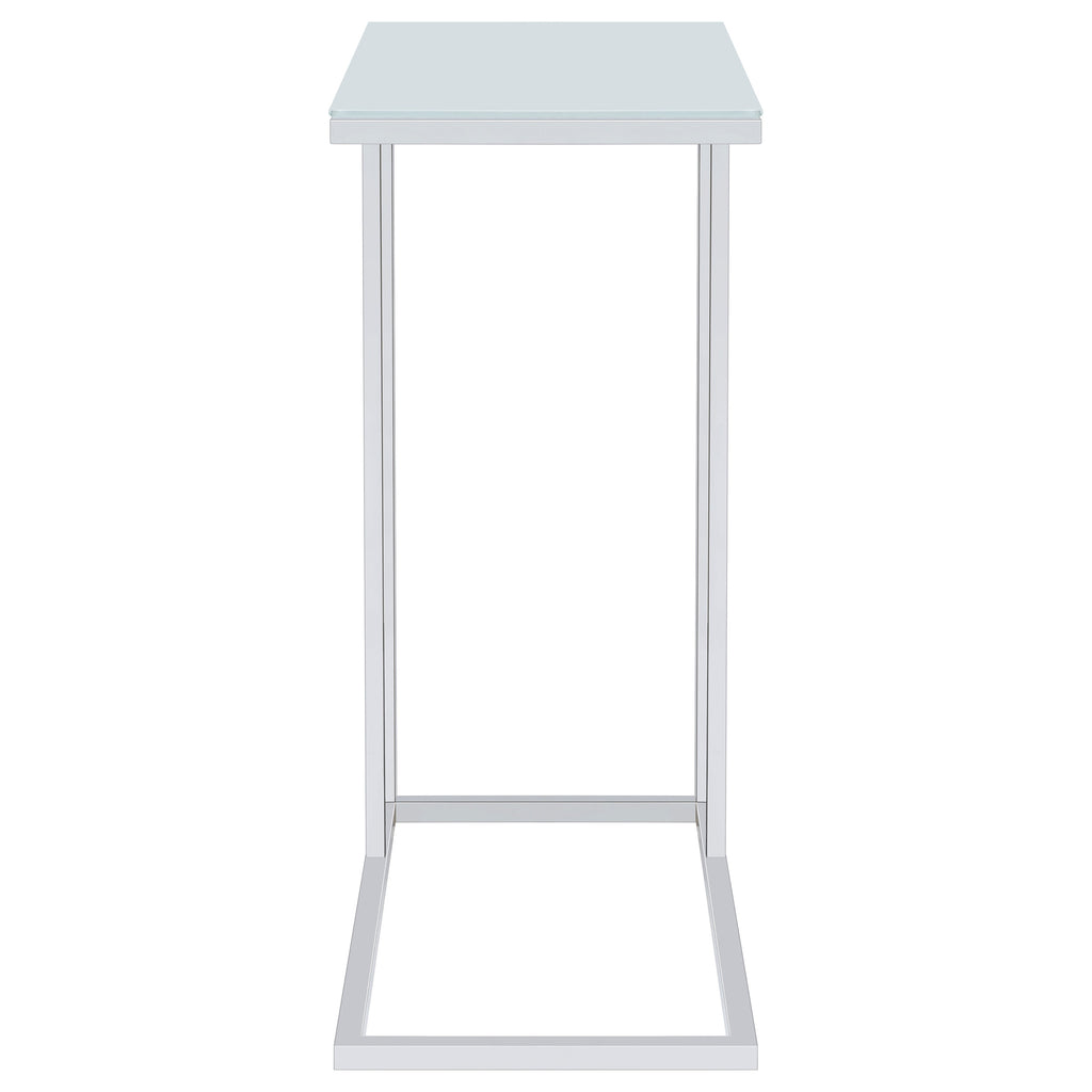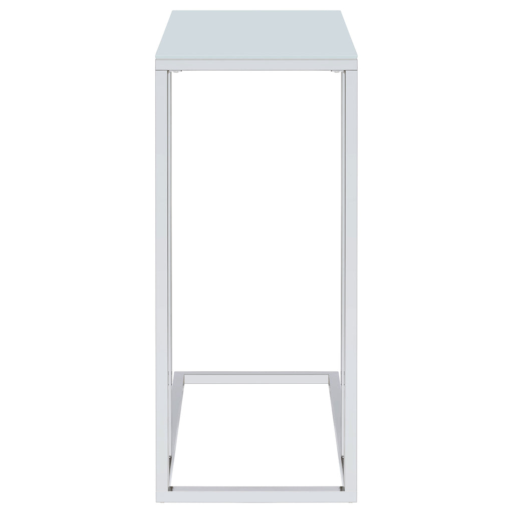 This side table features a stylish white glass top paired with a durable metal frame electroplated in chrome, offering a modern and sophisticated look. Perfect for use as a sofa table or accent piece, it provides a clean, minimalist design that complements any room. The sturdy metal frame ensures reliable support, while the white glass surface is easy to maintain, making this table a sleek and practical addition to your living space. Key Features: • Contemporary side table with a frosted tempered glass top • Metal frame electroplated in chrome for sleek, polished finish • Ideal as a sofa table, side table, or accent table • Sturdy frame ensures durability and stability in everyday use • Minimalist design complements a variety of room styles • Easy to maintain with a simple, clean surface for quick upkeep