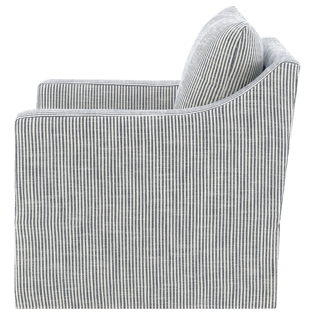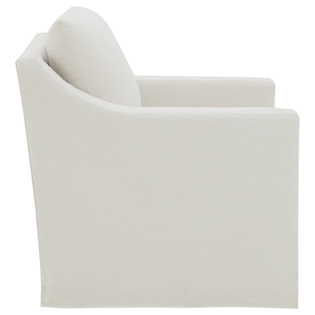This swivel accent chair complements living room décor with its neutral fabric and streamlined silhouette. Perfect as lounge seating or an occasional chair, it offers a gentle, 360-degree swivel for relaxed conversation or quiet reading. Its plush seat and transitional flair enhance the comfort and style of your home, blending subtle elegance with everyday versatility.